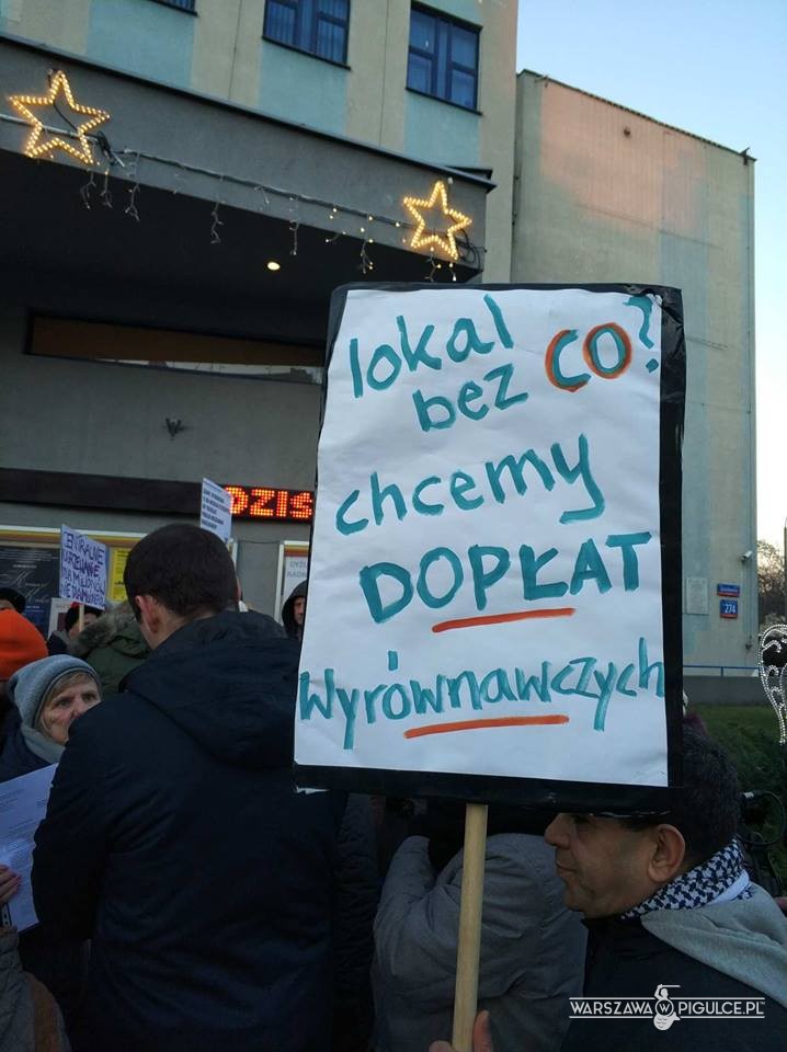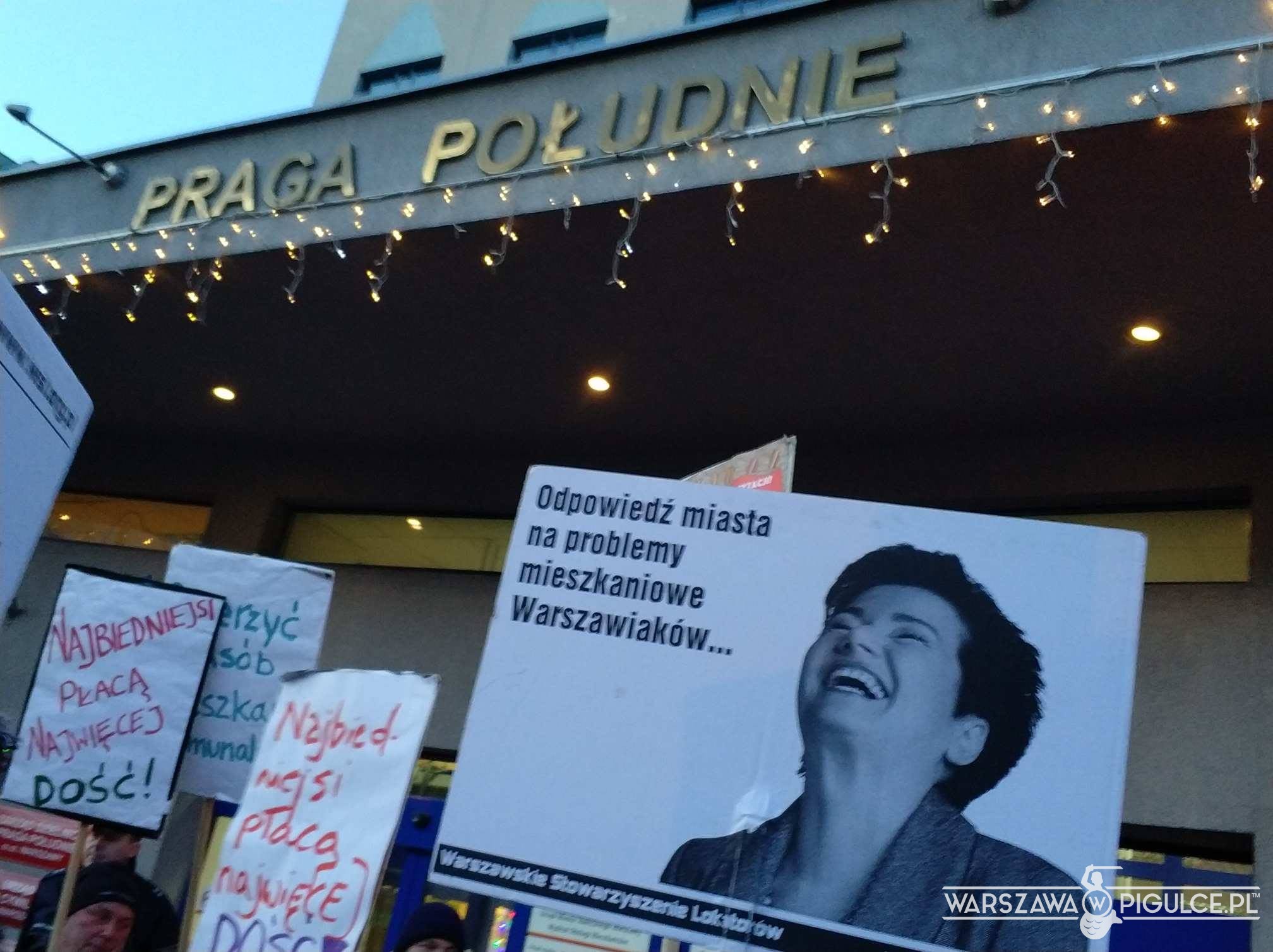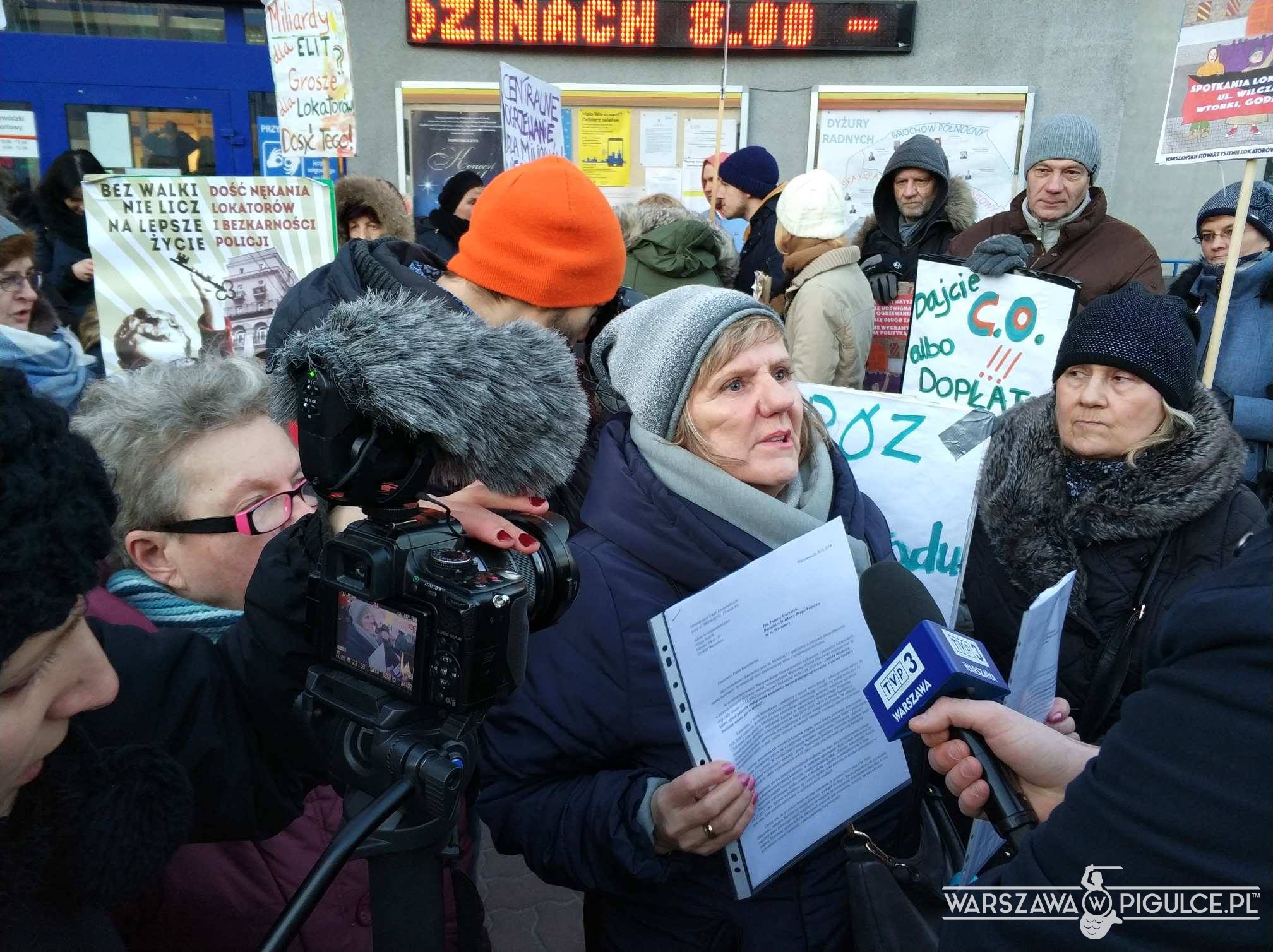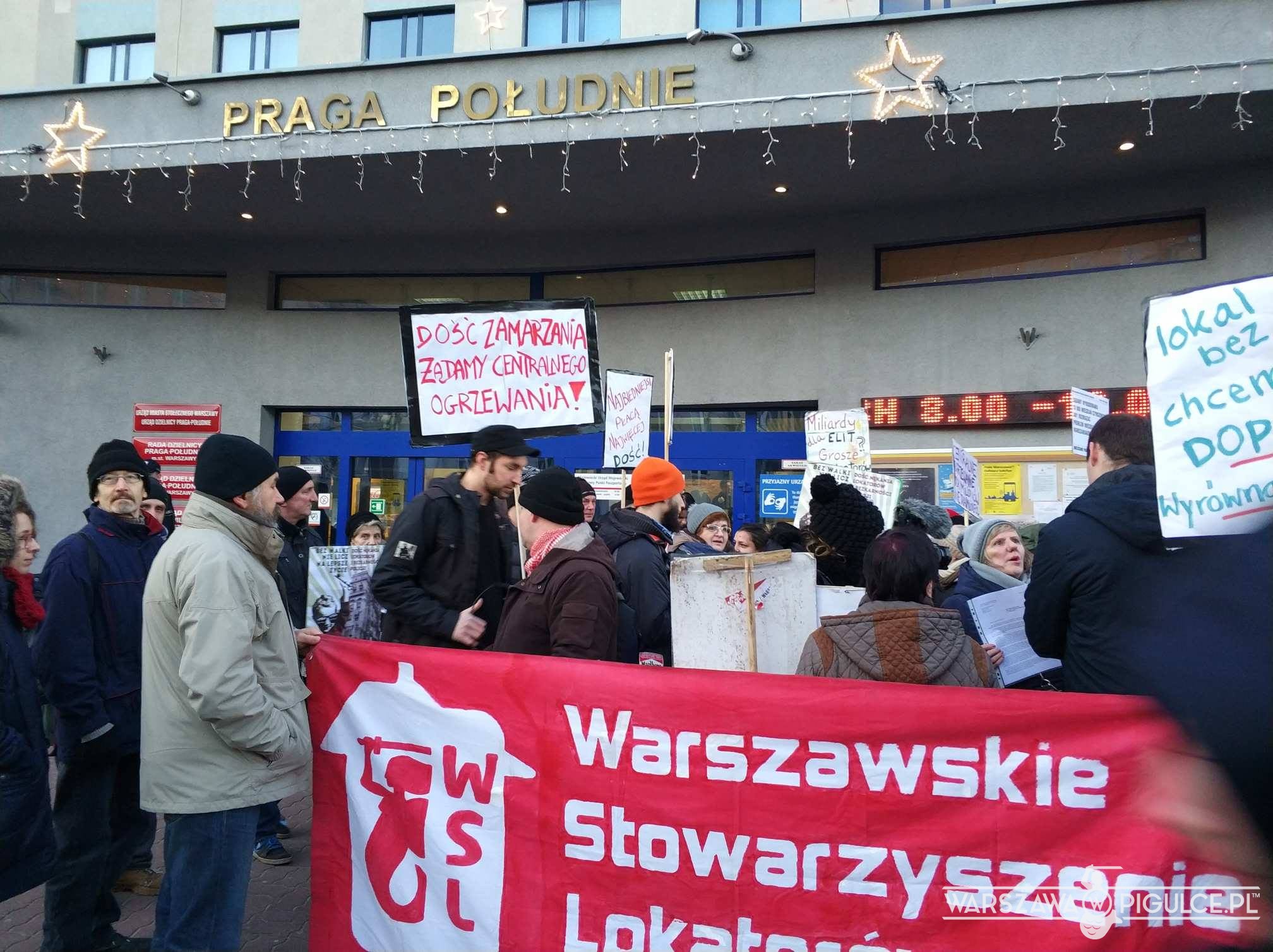 Przed Urzędem Dzielnicy Praga Południe na ulicy Grochowskiej trwa właśnie protest mieszkańców lokali komunalnych. W XXI wieku ludzie ci zmuszeni są mieszkać w lokalach bez centralnego ogrzewania w budynkach, w których nie ma też ciepłej wody.