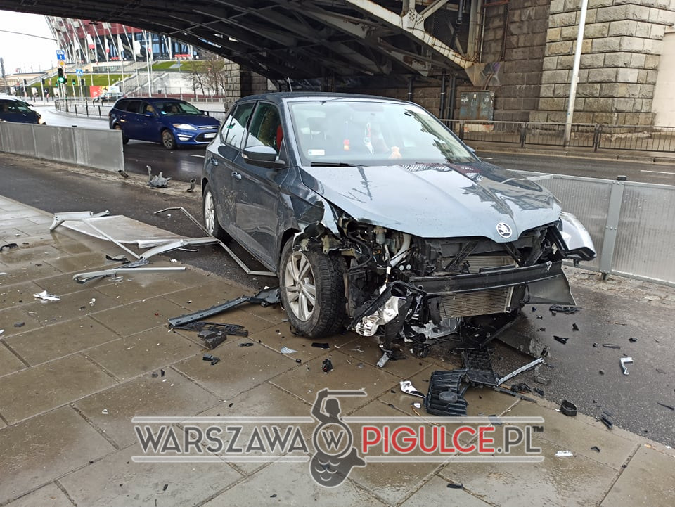 Wał Miedzeszyński: Kierowca Skody wjechał w barierki i w taksówkę.