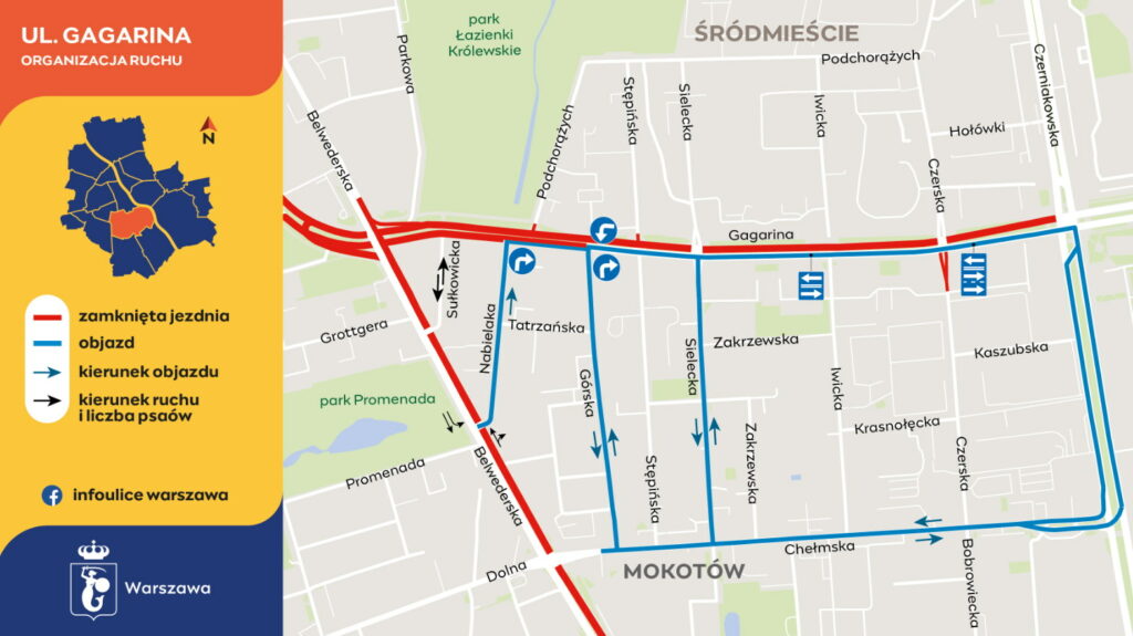 Na pierwszy plan wysuwa się zamknięcie fragmentu ulicy Gagarina, odnoszące się do wjazdu w Sułkowicką. Ten kluczowy punkt trasy zostanie całkowicie zablokowany, zmuszając kierowców do poszukiwania alternatywnych dróg, a co za tym idzie – zwiększający się natężenie ruchu na innych trasach.