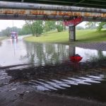 Na miejscu jest straż pożarna, która wypompowuje wodę z przejazdu.