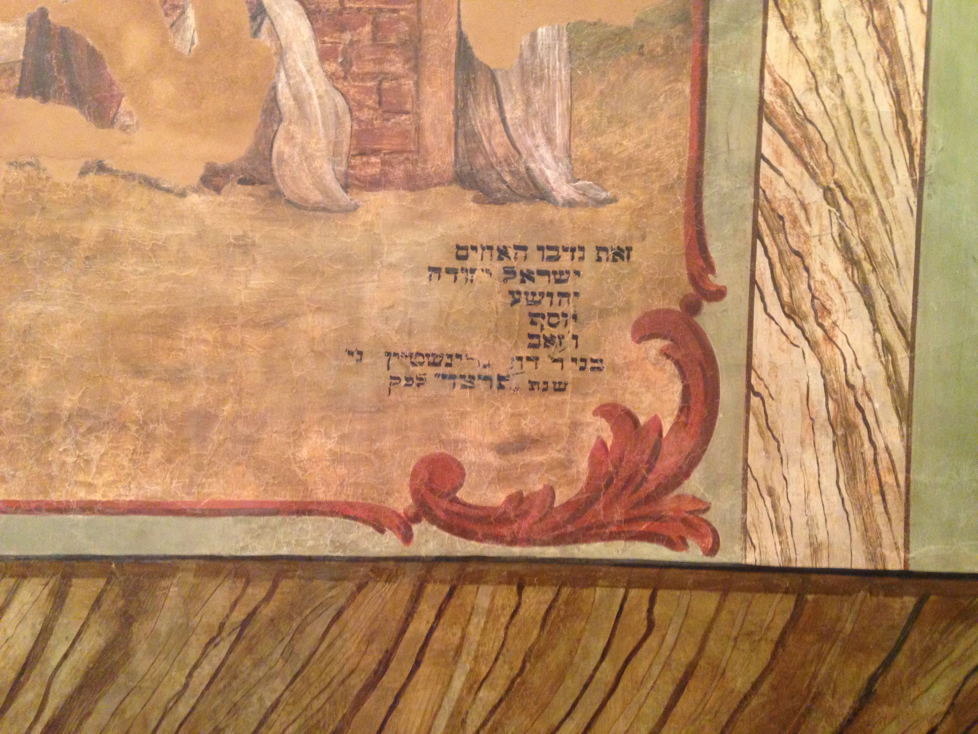Zgodnie z napisem fundacyjnym, malowidło ufundowali Israel Jehuda, Jehoszua, Josef i Zew – synowie Dawida Grinsztejna