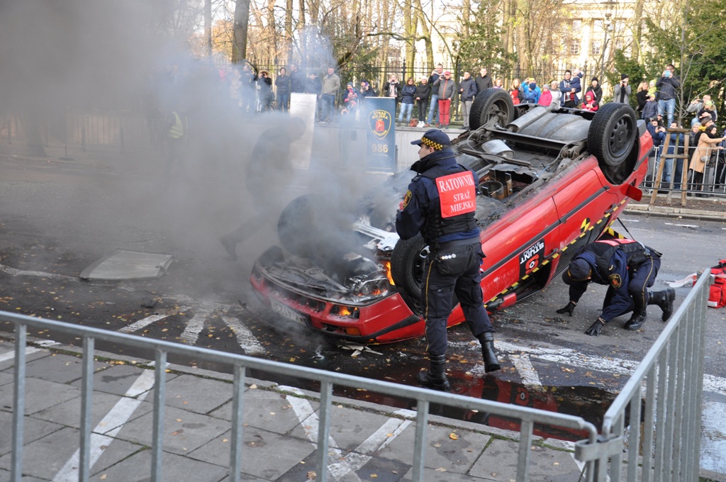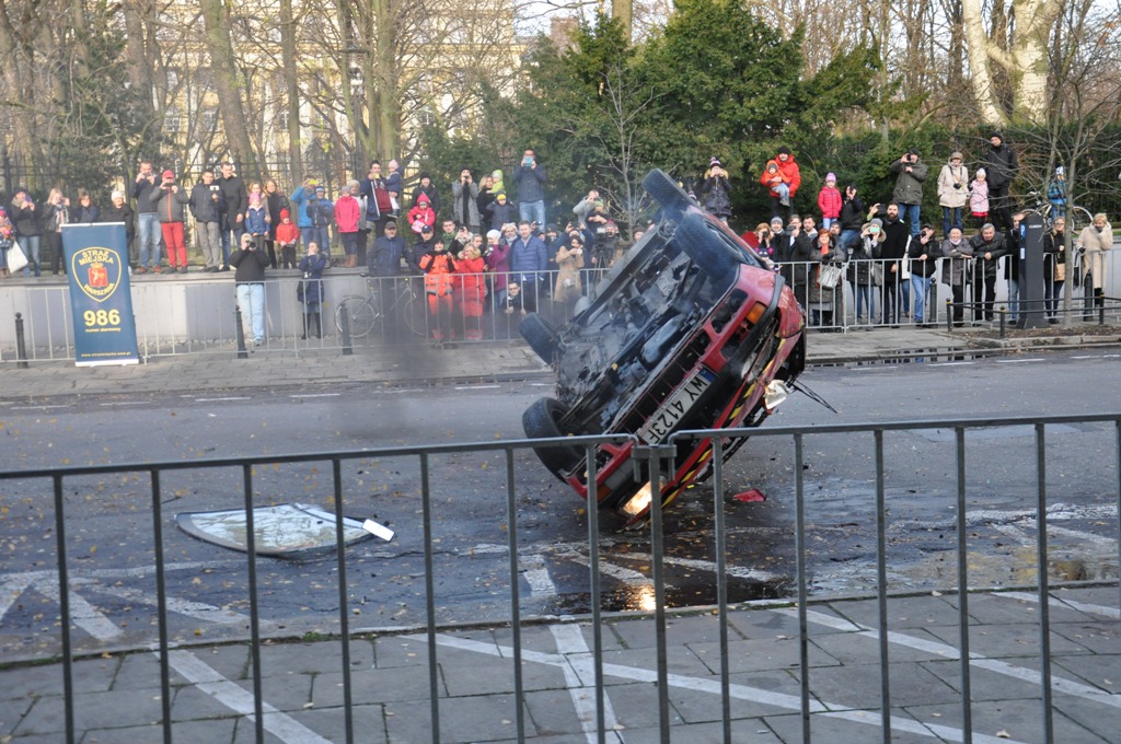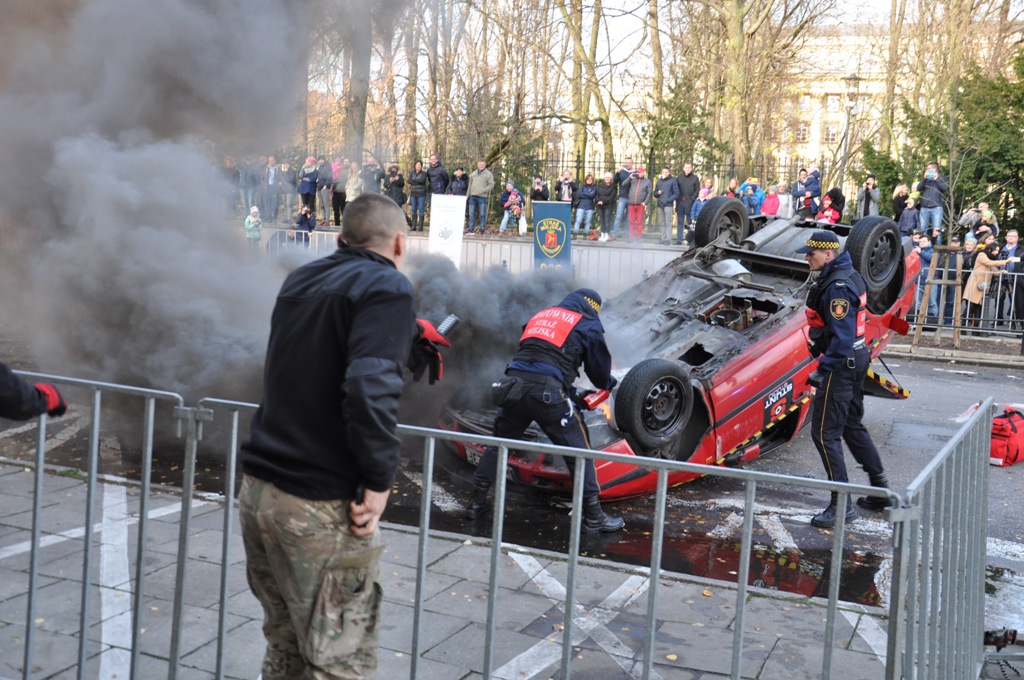 Kolizje i wypadki drogowe to, niestety, codzienność. Jednak wypadek jaki można było oglądać podczas pikniku organizowanego przez Fundację Drogi Mazowsza był wyjątkowy – nie tylko nikt w nim nie ucierpiał, ale też można było z bliska zobaczyć, jak w takich sytuacjach pracują służby ratunkowe i porządkowe. Strażnicy robili to, co do nich należało: zabezpieczyli miejsce wypadku, wezwali służby ratunkowe i do czasu ich przybycia udzielali pomocy przedmedycznej.