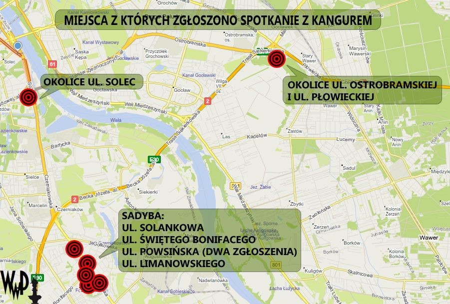 Kangura widmo w Warszawie widziano w paru miejscach – na Sadybie, w okolicach Ostrobramskiej, a także na Solcu.