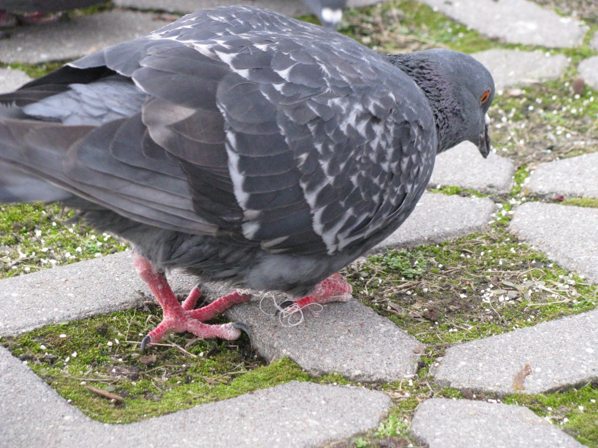– Najczęściej samodzielnie uwalniam ptaki z więzów. Bardziej skomplikowane przypadki odwożę do Ptasiego Azylu przy Warszawskim Zoo. Ilość zaplątanych ptaków rośnie lawinowo po okresie sprzedaży choinek. Dotyczy to głównie terenu zielonego przy ul. Ordonówny, gdzie ptaki bytują całorocznie. Ale ranne ptaki obecne są też w innych stadach na terenie Tarchomina. Nie wykluczam też że może być prowadzona w okolicy działalność kłusownicza. Sprawa była dwukrotnie zgłaszana na policję i umarzana z braku sprawcy. Jednak w tym roku po sprzedaży choinek zalegały na trawniku zwoje żyłek. Część gołębi ciągnęła na sobą na żyłce gałązki choinek. Więc źródłem tego problemu okazało się głownie niedostateczne uprzątniecie terenu po sprzedaży. Ptaki nie są w stanie same uwolnić się z żyłki, która z każdym dniem coraz bardziej zaciska się na ich kończynach ostatecznie odcinając dopływ krwi i powstanie obrzęku, ropni i ostatecznie martwicy. Można zaobserwować okaleczone nogi, ptaki chodzące na samych kikutach i wciąż utrzymującą się wrośniętą żyłką na resztkach kończyn – opisuje nam nasza bohaterka.