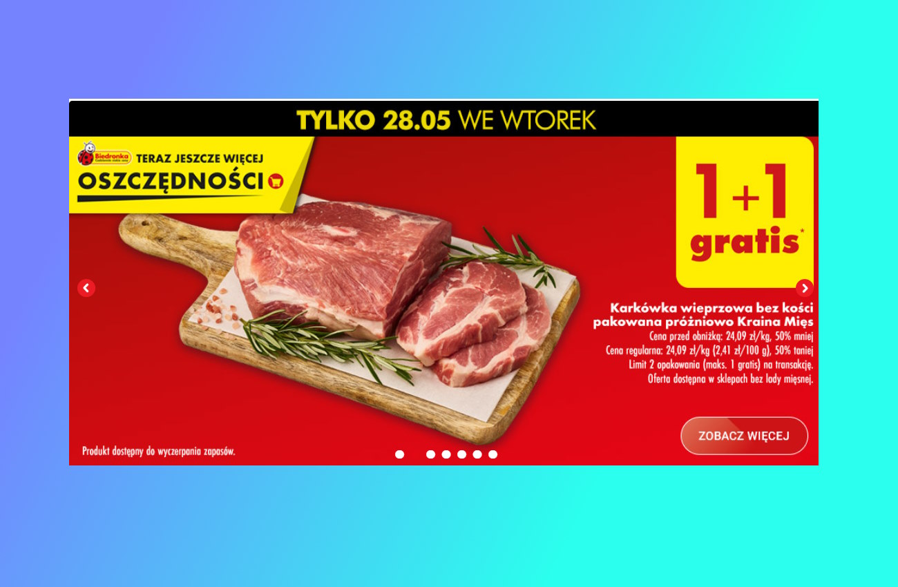 Warto się pospieszyć: Atrakcyjna promocja 1+1 gratis na karkówkę w Biedronce!