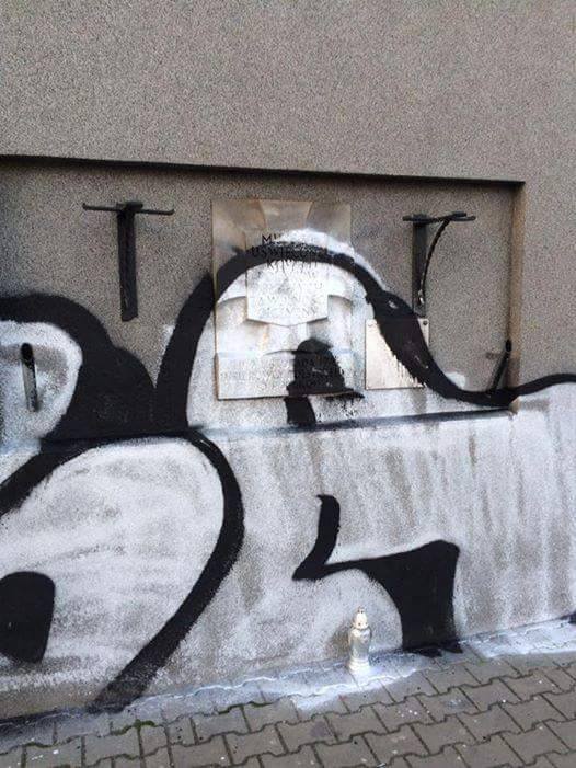 „Zauważyłem idąc na autobus pomalowany graffiti mur kamienicy, tablicę upamiętniającą 40 zabitych w tym miejscu Polaków, a nawet wysoki znicz stojący na ziemi. Wstrząśnięty dewastowaniem pamięci, głupotą, brakiem świadomości historycznej, a nawet zwykłej empatii, w końcu też aktem wandalizmu, zgłosiłem to na policję.”– pisze Pan Remigiusz