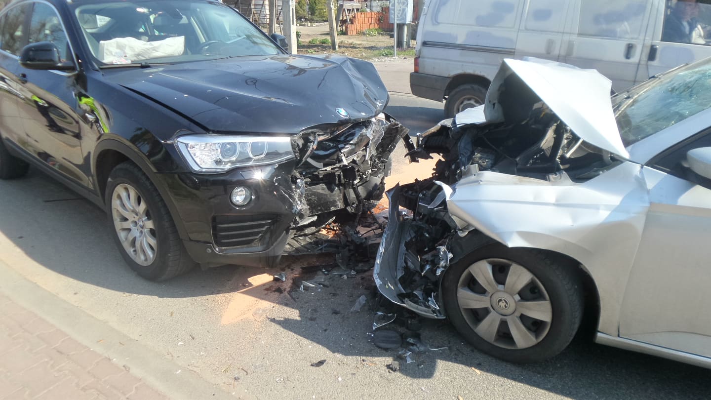 Wawer: Czołowe zderzenie BMW i skody. Kierowca skody ma ponad 2 promile