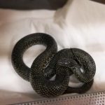 Funkcjonariusze natychmiast udali się pod wskazany adres. Tym razem informacja się potwierdziła – to nie była ani stara lina okrętowa, ani zwinięta dziwnie szmata. To prawie metrowy wąż o czarno-szarym ubarwieniu.