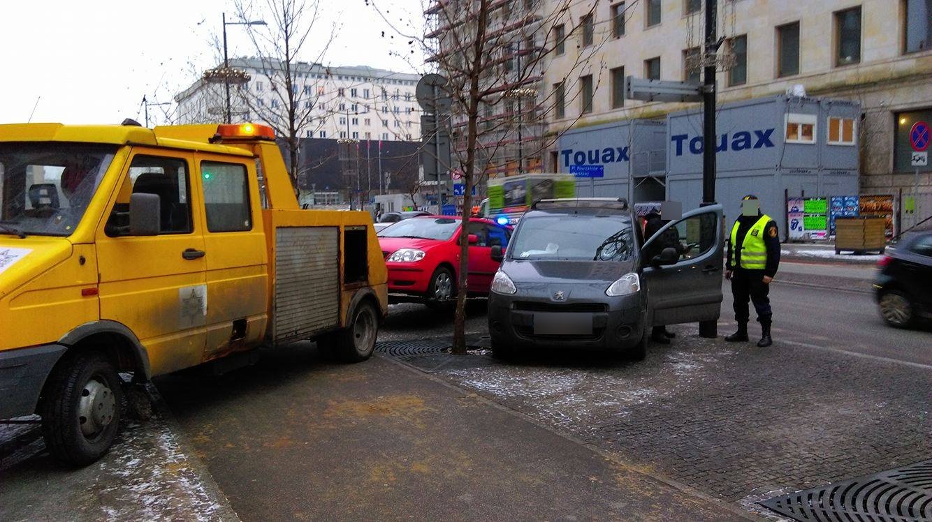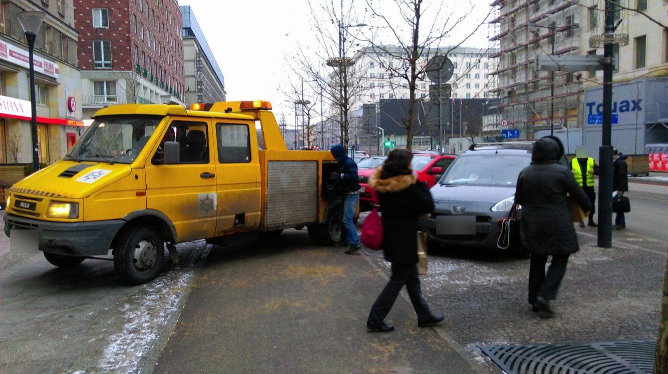 Wielkie holowanie na Świętokrzyskiej. Laweta w akcji. Sypią się mandaty