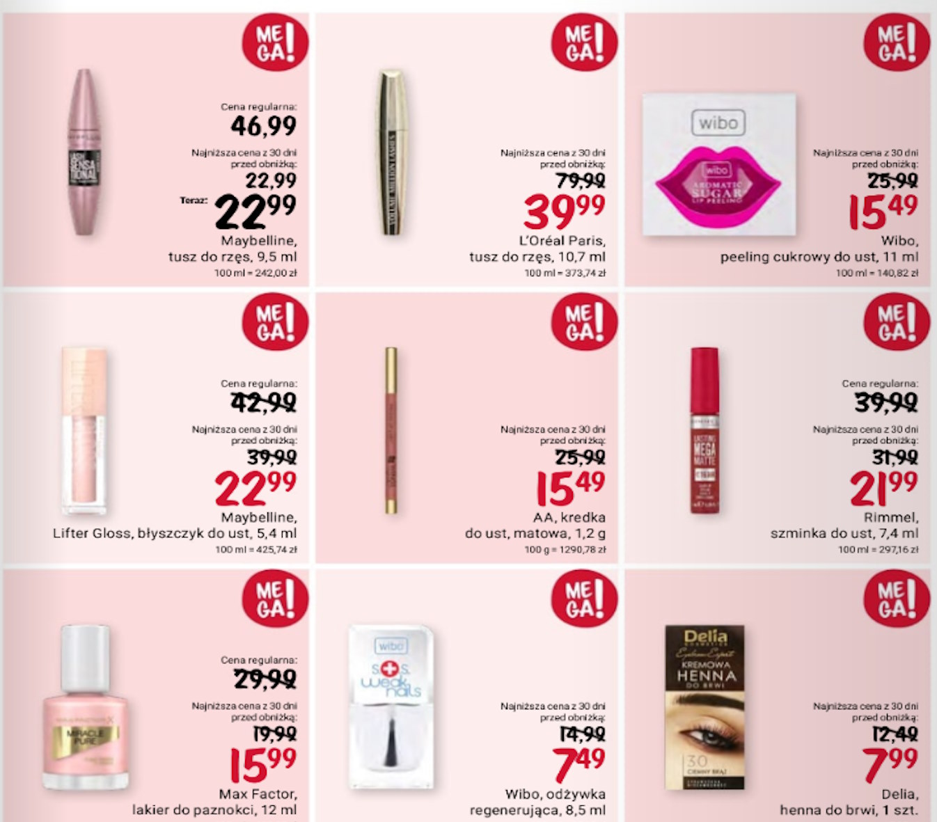 Nie można też przeoczyć oferty na błyszczyki do ust Maybelline, które dają efekt pełnych i lśniących ust, czy też kredki do ust AA, które umożliwiają precyzyjne podkreślenie kształtu ust. Dla tych, którzy cenią sobie naturalny wygląd, Rossmann proponuje hennę do brwi od Delii, która jest dostępna za ułamek regularnej ceny.