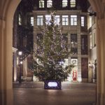 Kamienica przy Placu Bankowym 1 jest gotowa do świąt. Na jej dziedzińcu stanęła okazała, żywa choinka, a na elewacji budynku pojawiły się świąteczne ozdoby.