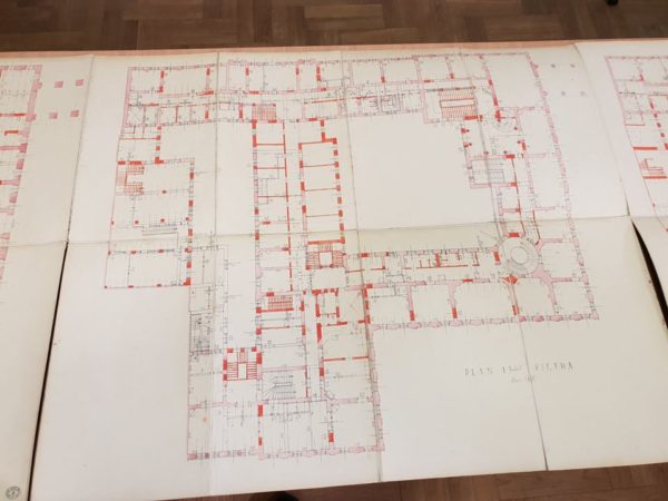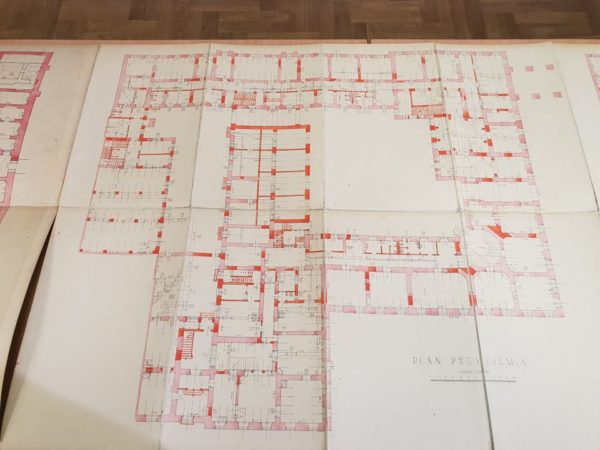 Na zdjęciach widzicie Państwo inwentaryzacje i plany pałacu saskiego z lat 1929-39. Będą one stanowiły podstawę do restytucji budowli oraz zdjęcie z ich przekazania w grudniu 2018 roku.