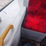 Pasażerka wysiadła przy ulicy Lubelskiej zostawiając po sobie bałagan i narażając następnych pasażerów w tramwaju na zabrudzenie ubrania.