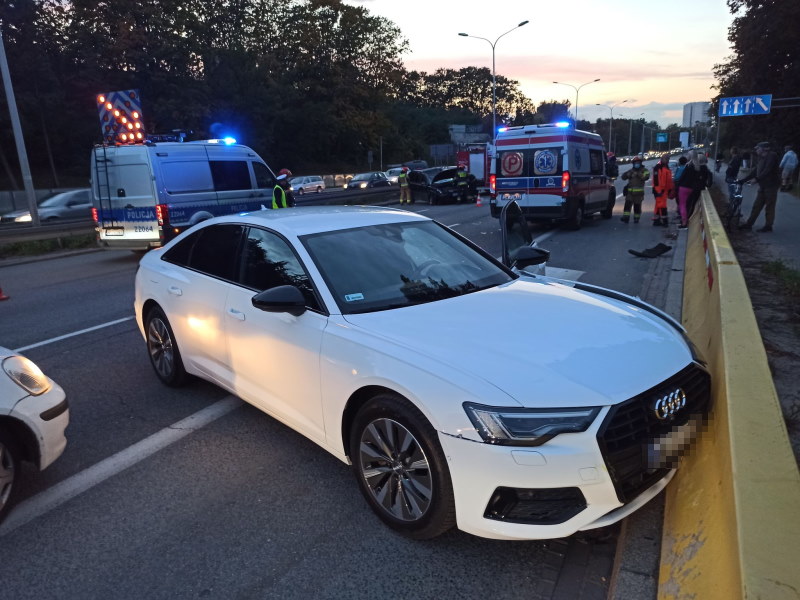 Na Wisłostradzie na wysokości Cytadeli doszło do zderzenia trzech aut. Jedno z nich dachowało, ma zmiażdżony dach. Trzy osoby zostały poszkodowane.