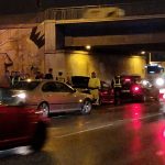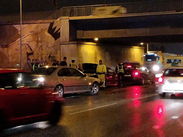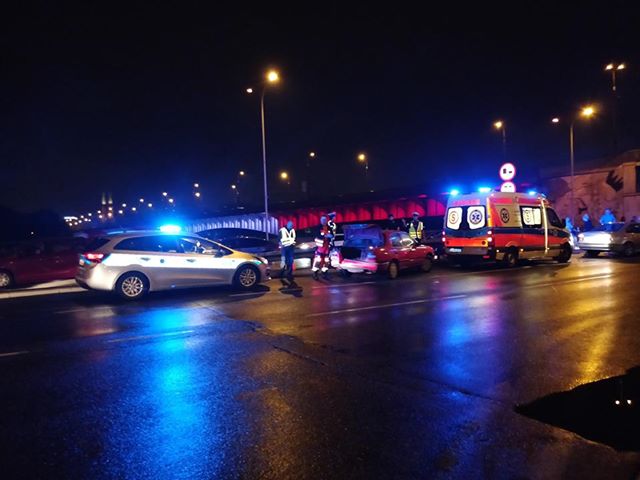 Na Wisłostradzie na wysokości mostu Śląsko-Dąbrowskiego doszło do zderzenia 4 aut: skody, 2 BMW i nissana.