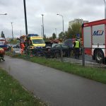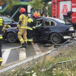 Wjechał BMW w barierki i latarnię. Kierowca był zakleszczony w pojeździe