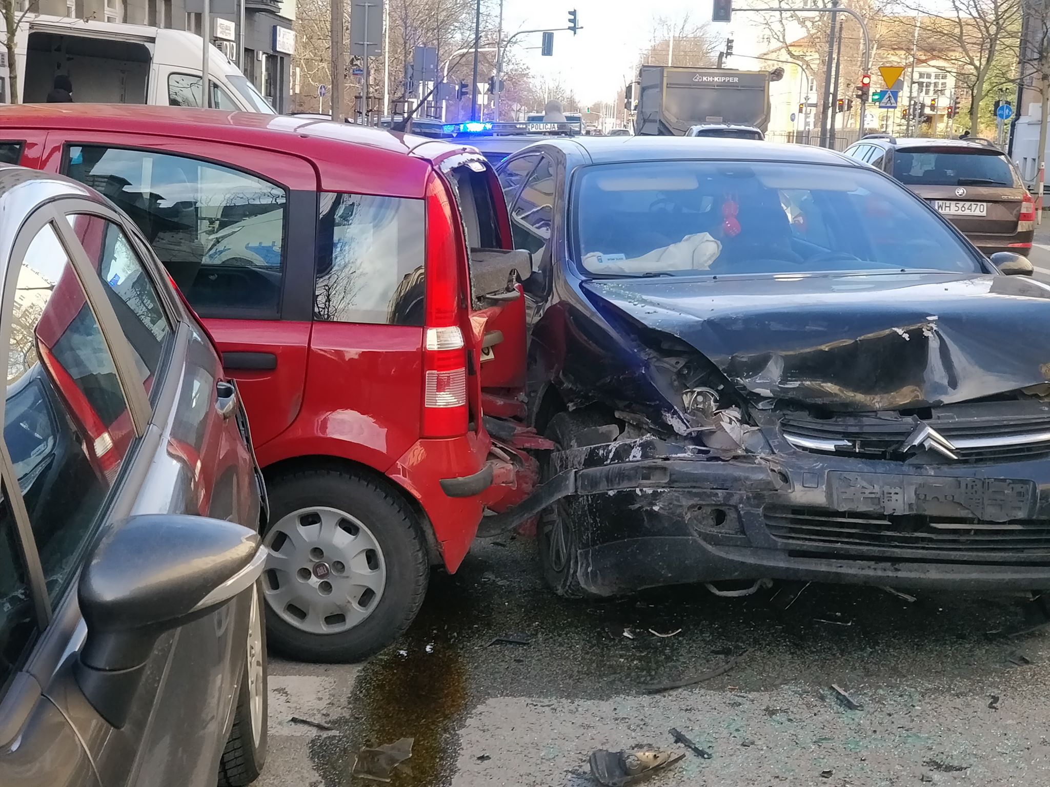 Na ulicy Jagiellońskiej na wysokości numeru 25 doszło do zderzenia 5 aut. Ze wstępnych ustaleń wynika, że kierujący citroenem uderzył w cztery zaparkowane samochody i oddalił się z miejsca zdarzenia.