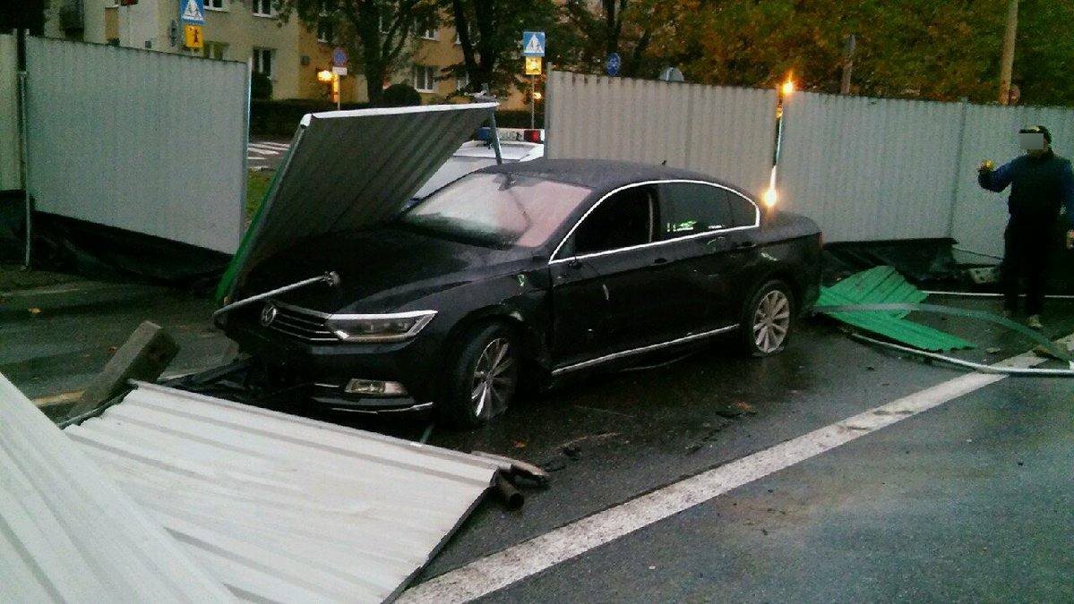 Dziś rano na budowie drugiej linii metra miała miejsce niecodzienna sytuacja. Kierujący ciemnym volkswagenem wjechał w ogrodzenie. Interweniowała policja.