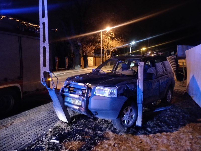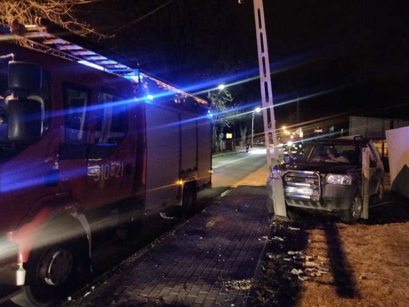 Wjechał w słup energetyczny. Był tak pijany że pomylił radiowóz z wozem straży pożarnej