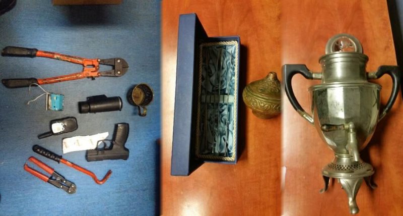 Prowadzone przez policjantów czynności doprowadziły ich także do jego miejsca zamieszkania. Tu ujawniono kolejny pistolet gazowy, lunetę którą jak oświadczył obserwował przed włamaniami wytypowane posesje, a także odnaleziono sporządzony przez niego plan pewnej nieruchomości, którą miał się zamiar „zająć”. Zabezpieczono również rzeczy pozostałe po kradzieżach w tym samowar, numizmaty i zegarki. Ustalono, że większość skradzionych przedmiotów mężczyzna sprzedawał w lombardach.