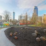 Ważnym elementem całego skweru jest też specjalnie wydzielony wybieg dla czworonogów. Pieski mają tu do dyspozycji duży, zielony teren, wyposażony w różnego rodzaju urządzenia do zabawy. Są również śmietniki oraz akcesoria do sprzątania.