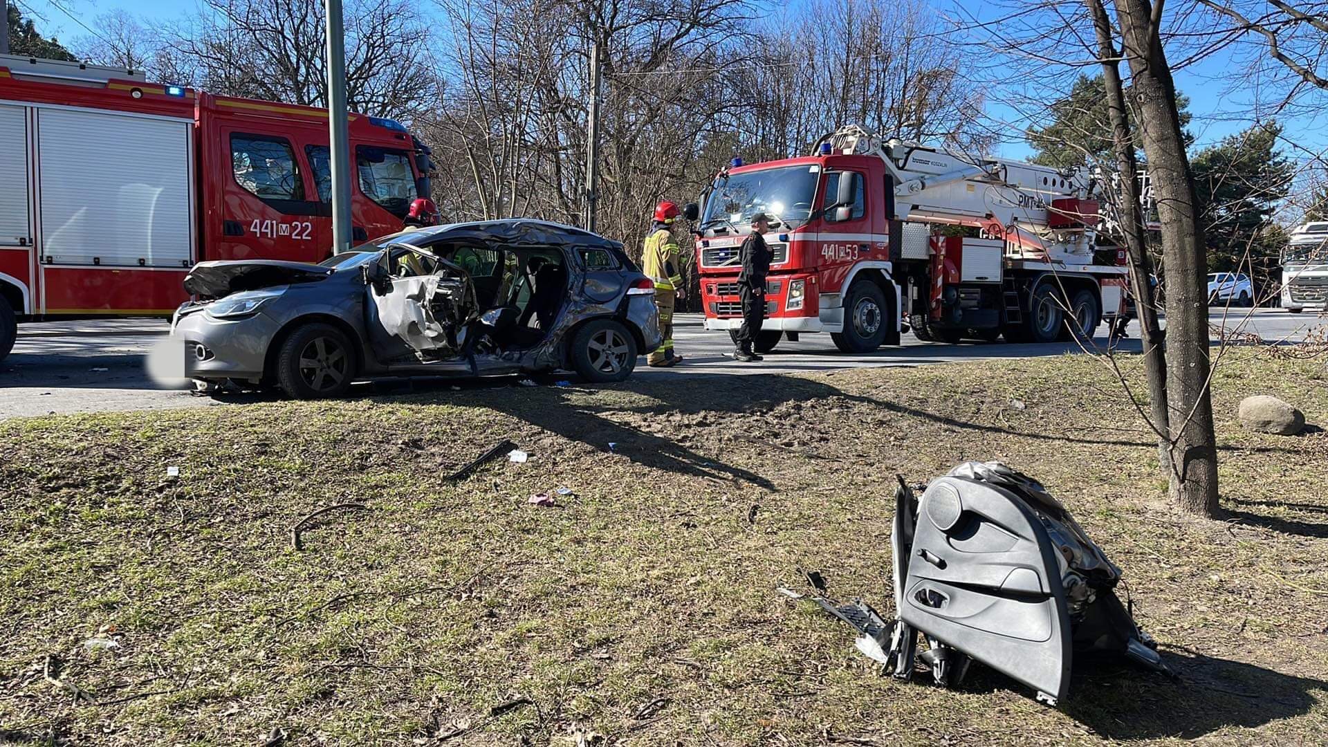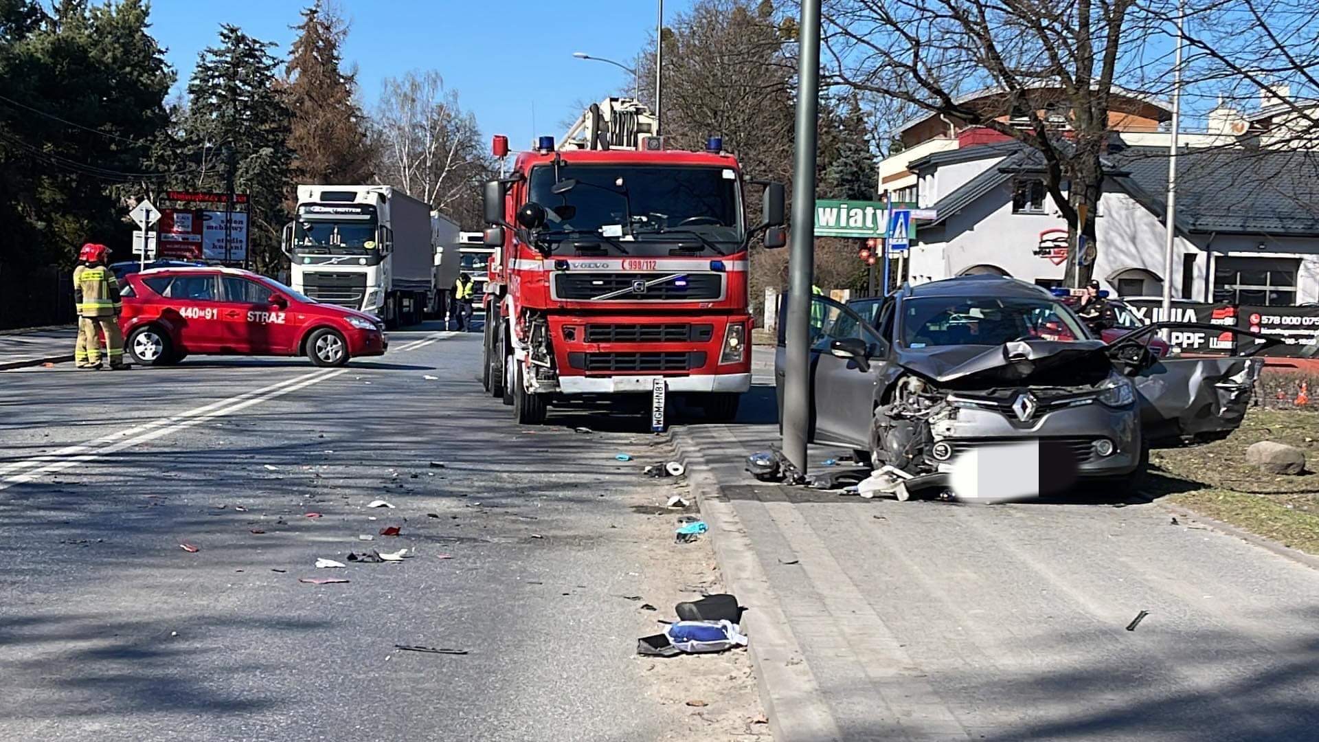 Na skrzyżowaniu Okulickiego z Armii Krajowej w Grodzisku Mazowieckim doszło do zderzenia samochodu osobowego marki Renault z pojazdem straży pożarnej marki volvo. Kierująca samochodem osobowym była zakleszczona w aucie. Nieprzytomna trafiła do szpitala.