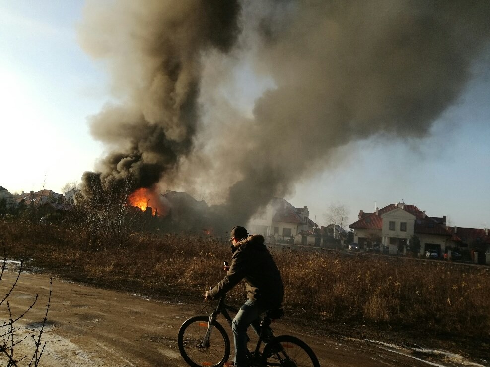 Ogromny pożar w Łomiankach. Zapalił się dom w którym znajdowała się hurtowania fajerwerków. Kilkanaście minut przed 15.00, jedna ze ścian budynku uległa zawaleniu.