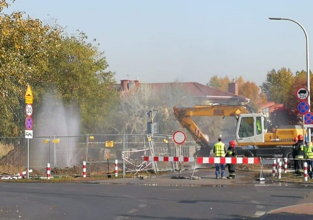 Podczas prac ziemnych koparka uszkodziła rurę z gazem.