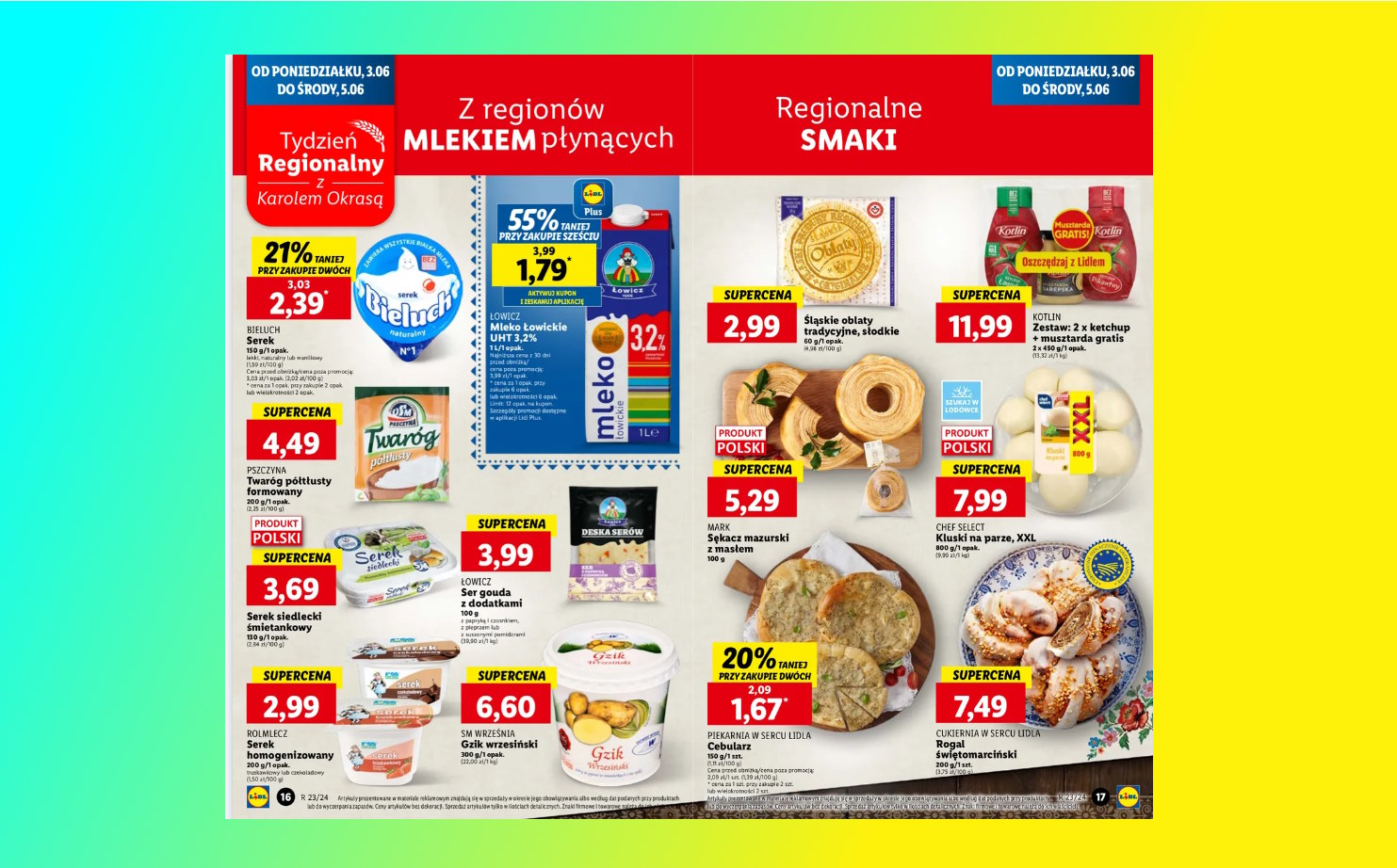 Od najbliższego poniedziałku, 3 czerwca, Lidl zaprasza na Tydzień Regionalny z Karolem Okrasą. To niepowtarzalna okazja, aby zaopatrzyć się w tradycyjne polskie produkty po wyjątkowo atrakcyjnych cenach. Promocja, trwająca do środy, 5 czerwca, oferuje szeroki wybór artykułów, które zadowolą każdego miłośnika regionalnych smaków.