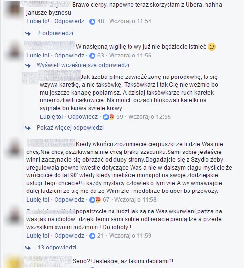 Post szybko znalazł się w serwisie wykop.pl, skąd trafił na stronę główną. Został też udostępniony na Facebooku kilkadziesiąt razy. Niestety, takie wypowiedzi na pewno nie przysporzą zwolenników ani fanpage’owi, ani też taksówkarzom w ogóle. Na odpowiedź internautów nie trzeba było długo czekać.