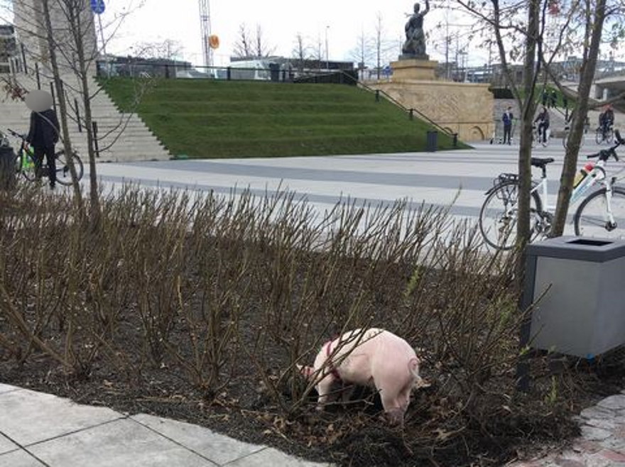 Zaniepokojona właścicielka szukała świnki, która w tym momencie robiła furorę wśród spacerowiczów.