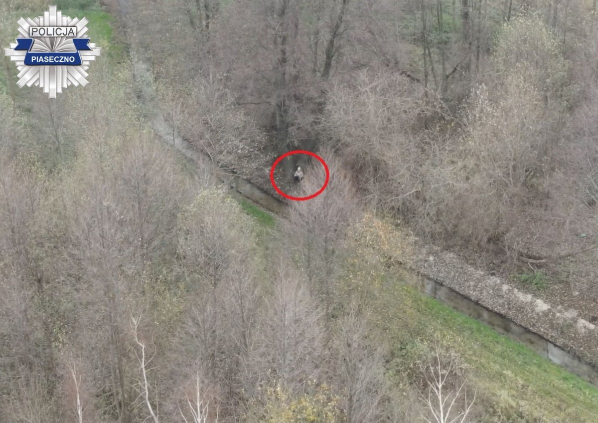 Policjanci odnaleźli zaginioną 58-letnią kobietę. Podczas działań wykorzystany został policyjny dron, dzięki któremu funkcjonariusze szybko dotarli do wyziębionej kobiety, która przebywała w trudno dostępnym terenie.