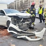 Na skrzyżowaniu Grójeckiej z Bitwy Warszawskiej 1920 roku doszło do zderzenia dwóch samochodów osobowych marki mercedes i mazda. Dwie osoby były badane przez ratowników medycznych.