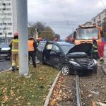 Wypadek na Banacha! Jedno auto zablokowało torowisko tramwajowe