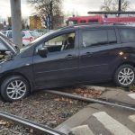 Po zderzeniu mazda wjechała w torowisko. Zablokowane było częściowo skrzyżowanie oraz torowisko.