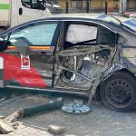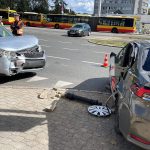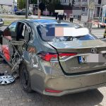 Po zderzeniu auto wjechało w słupki oraz latarnię.
