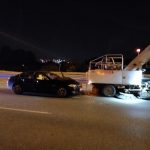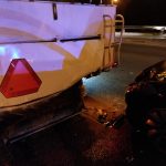 Na Moście Siekierkowskim doszło do wypadku z udziałem BMW. Kierowca BMW jechał z małą prędkością i najprawdopodobniej przez nieuwagę uderzył w pojazd oczyszczania miasta.
