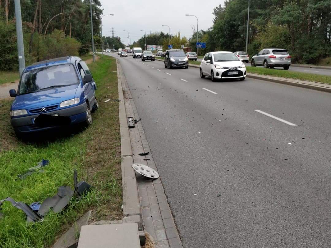 Wypadek na Płochocińskej. Jedno z aut w rowie