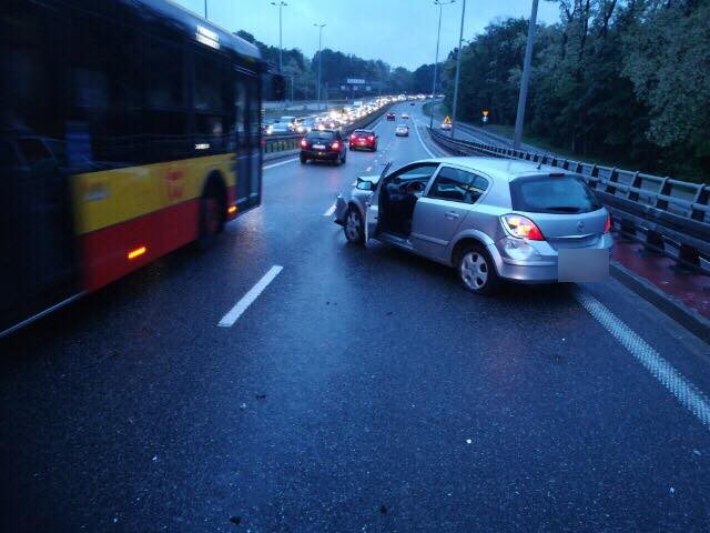 Auto uderzyło w barierki na Prymasa Tysiąclecia. Na miejscu pracują służby.