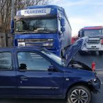 Kierowca ciężarówki zmieniając pas nie zauważył samochodu osobowego. Przybyłe na miejsce służby ratunkowe zbadały uczestników zdarzenia, na szczęście nikt nie został ciężko ranny, mimo to powstają tam coraz większe utrudnienia.