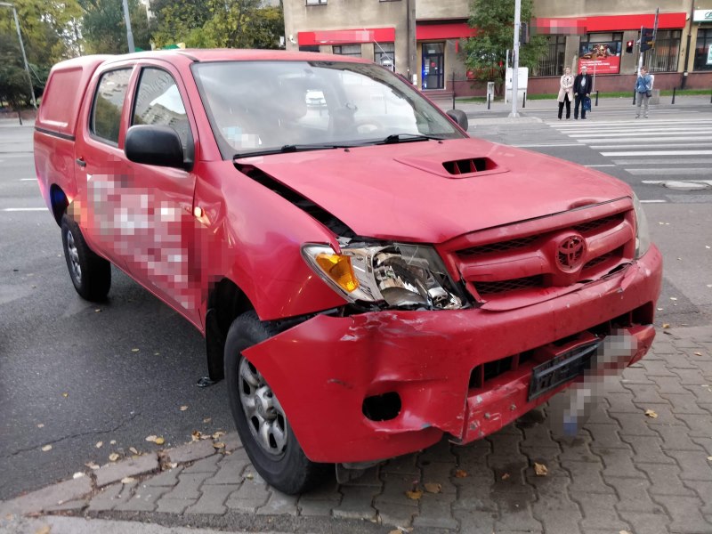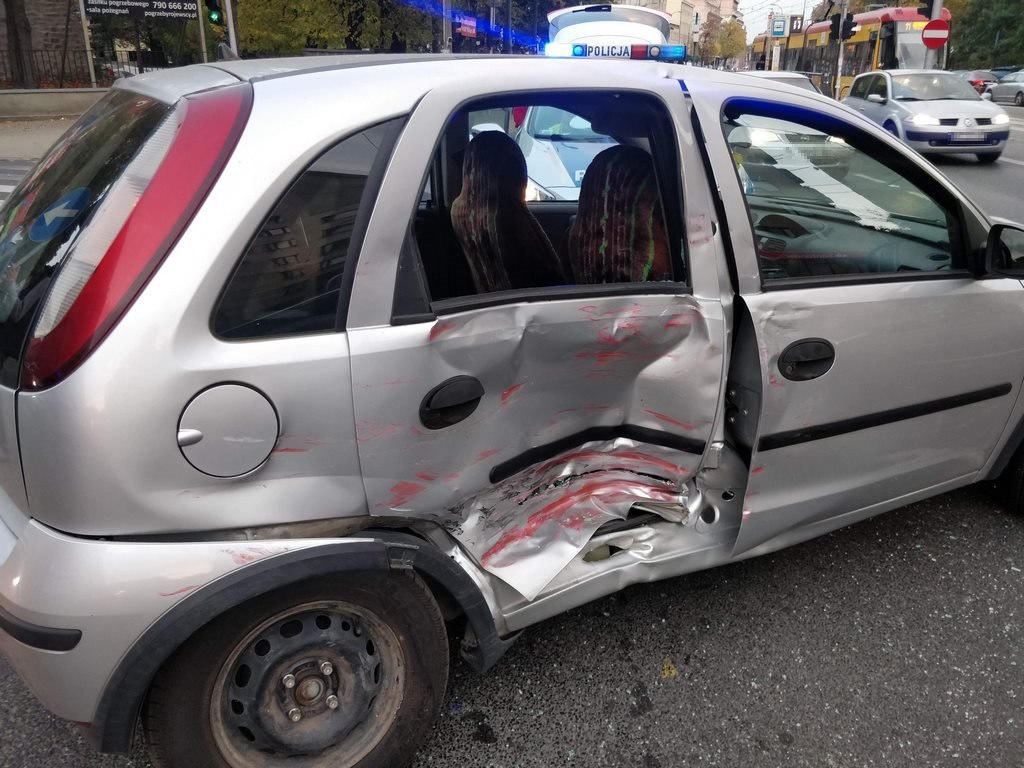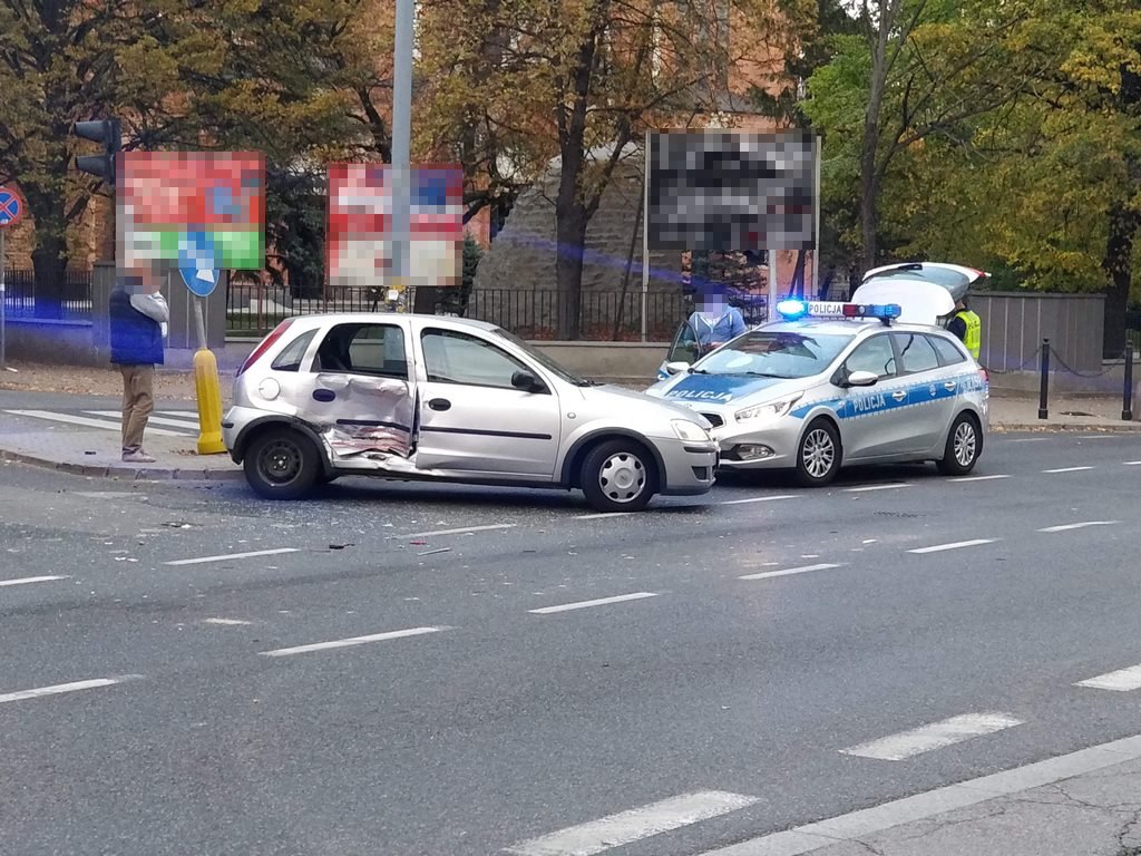 Na skrzyżowaniu ulic Wolskiej i Sokołowiej zderzył się opel i toyota. Pojazdy są poważnie uszkodzone, jedna osoba została zabrana do szpitala.