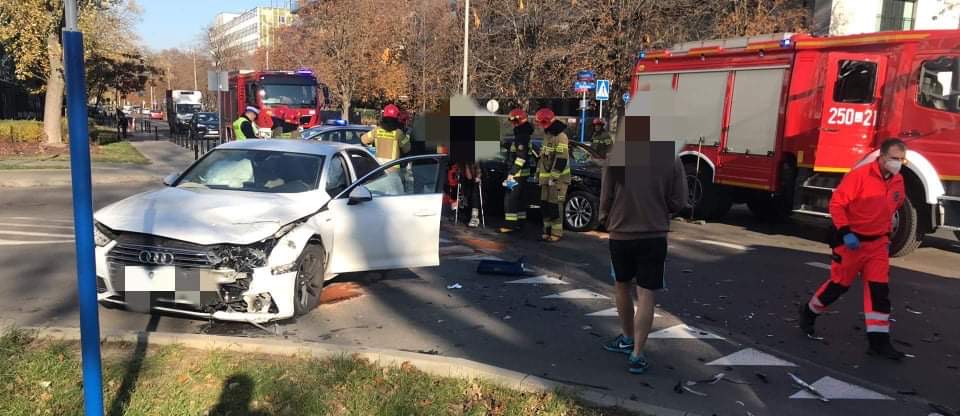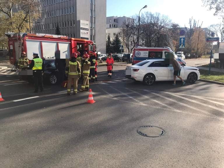 Na skrzyżowaniu Rydygiera z Przasnyską na Żoliborzu doszło do zderzenia dwóch samochodów osobowych marki audi i BMW. Jedna osoba trafiła do szpitala.