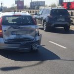 Kierująca volkswagenem wjechała w tył Kii. Nikt nie został ranny. Jeden pas jest zablokowany.