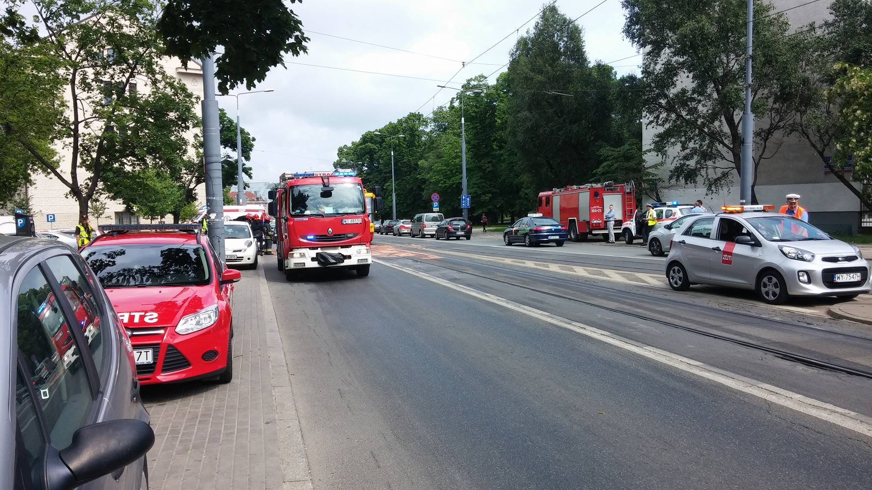 Stołeczna policja informuje o zderzeniu motocykla z samochodem osobowym marki mazda do jakiego doszło o godz. 14.30. Nie ma informacji o poszkodowanych, jednak Pan Robert poinformował nas, że kierowca motocykla opatrywany jest w karetce. Obecnie ruch jest powoli wznawiany, jednak tramwaje nadal nie ruszyły. Motocykl leży na torach, a samochód ma rozbity przód.