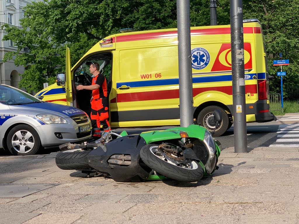 Wypadek z motocyklistą w Śródmieściu. Ranny trafił do szpitala