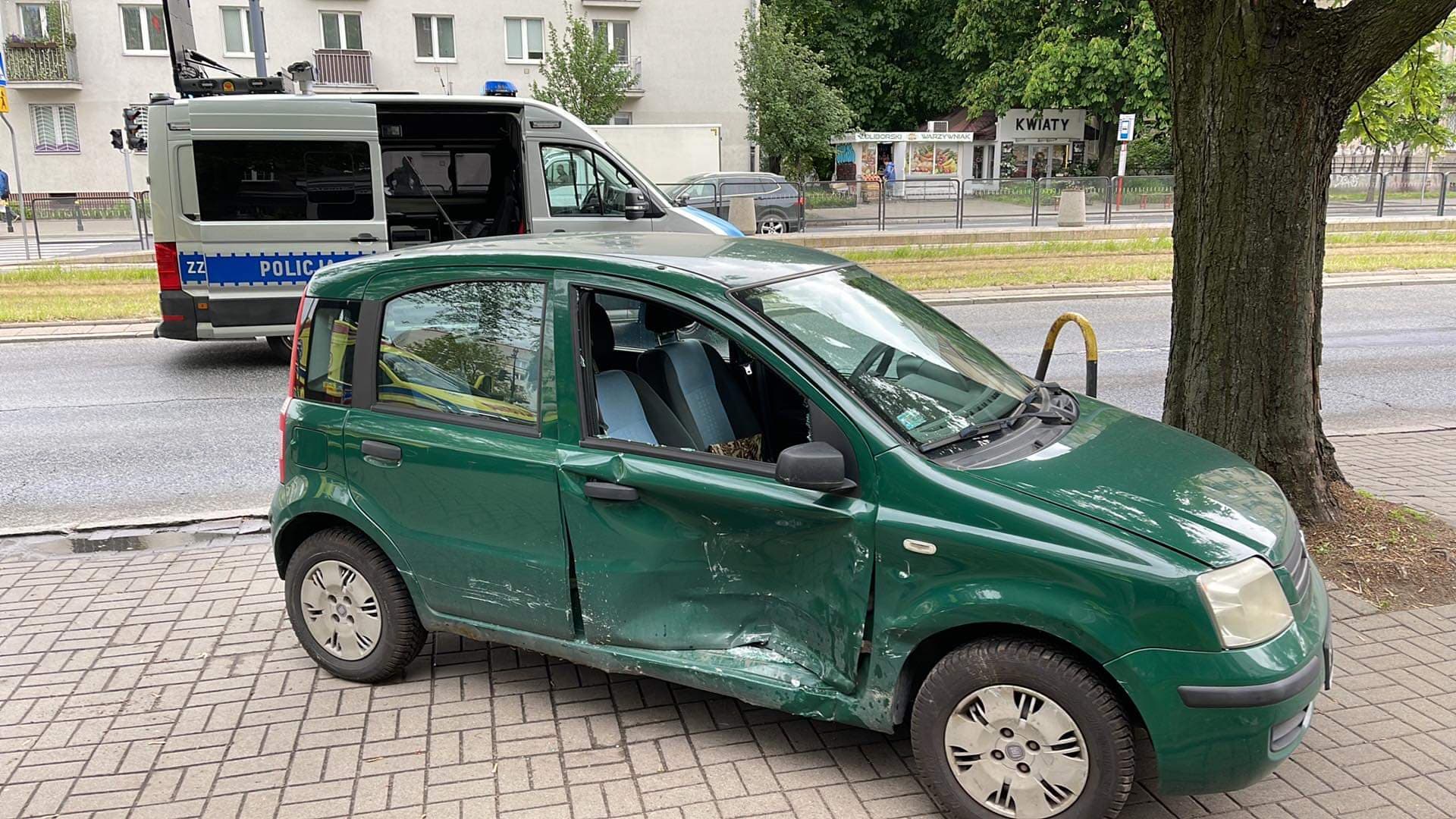 Na skrzyżowaniu Krasińskiego z Popiełuszki na Żoliborzu doszło do zderzenia dwóch samochodów osobowych marki fiat i volkswagen. Pojazdem marki fiat podróżowali funkcjonariusze Służby Celnej.