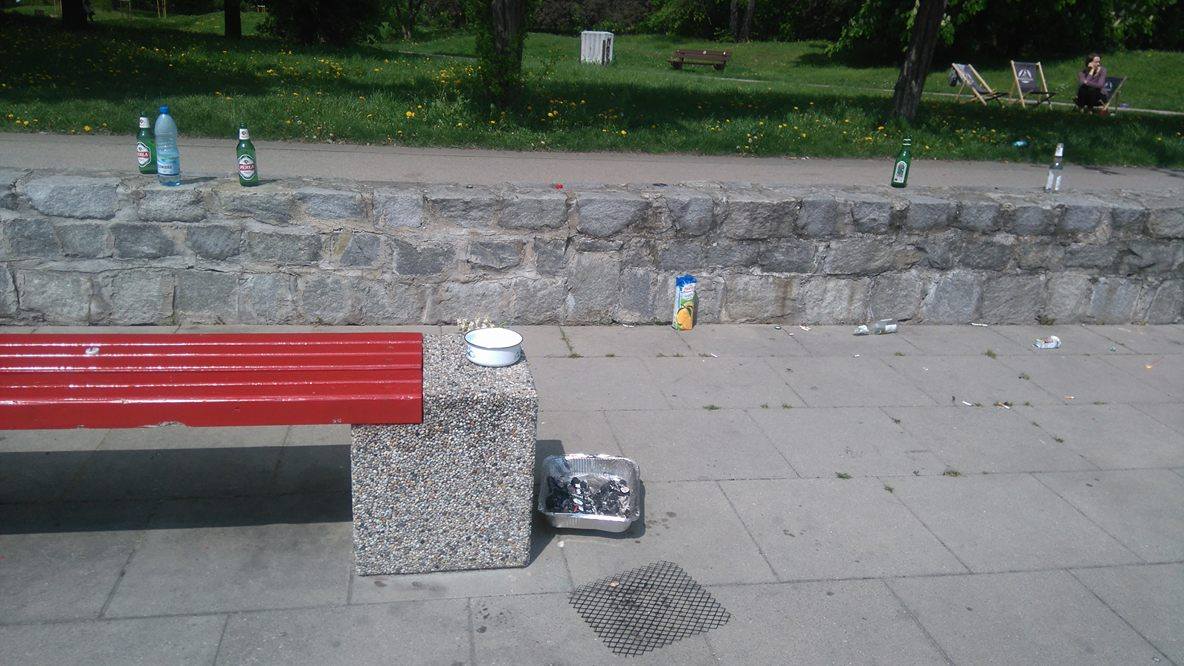 „Dzień dobry, piszę w sprawie, która dziś mnie bardzo zbulwersowała. Mianowicie dziś, niedziela, godz. 10, Pole Mokotowskie, przy jeziorku. Będąc na spacerze zastałam prawie dosłownie wysypisko śmieci. Porozrzucane puste butelki po piwie, jednorazowe grille, paczki papierosów. Naprawdę zastanawiające jest to, że „imprezowicze” mieli siłę przynieść pełne butelki, a zabrakło jej by wynieść puste.
