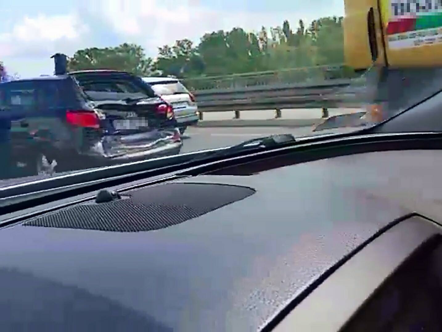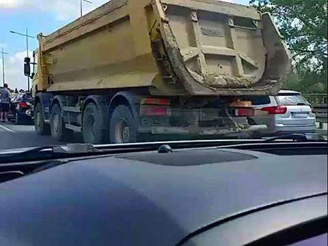 „Na wysokości Portu Czerniakowskiego wywrotka najechała na samochód osobowy, który popchnięty uderzył jeszcze w auto jadące w przed nim. Występują duże utrudnienia w kierunku Pragi Południe. Przejezdny jest tylko lewy pas ruchu.” – informuje Praga Południe na Sygnale