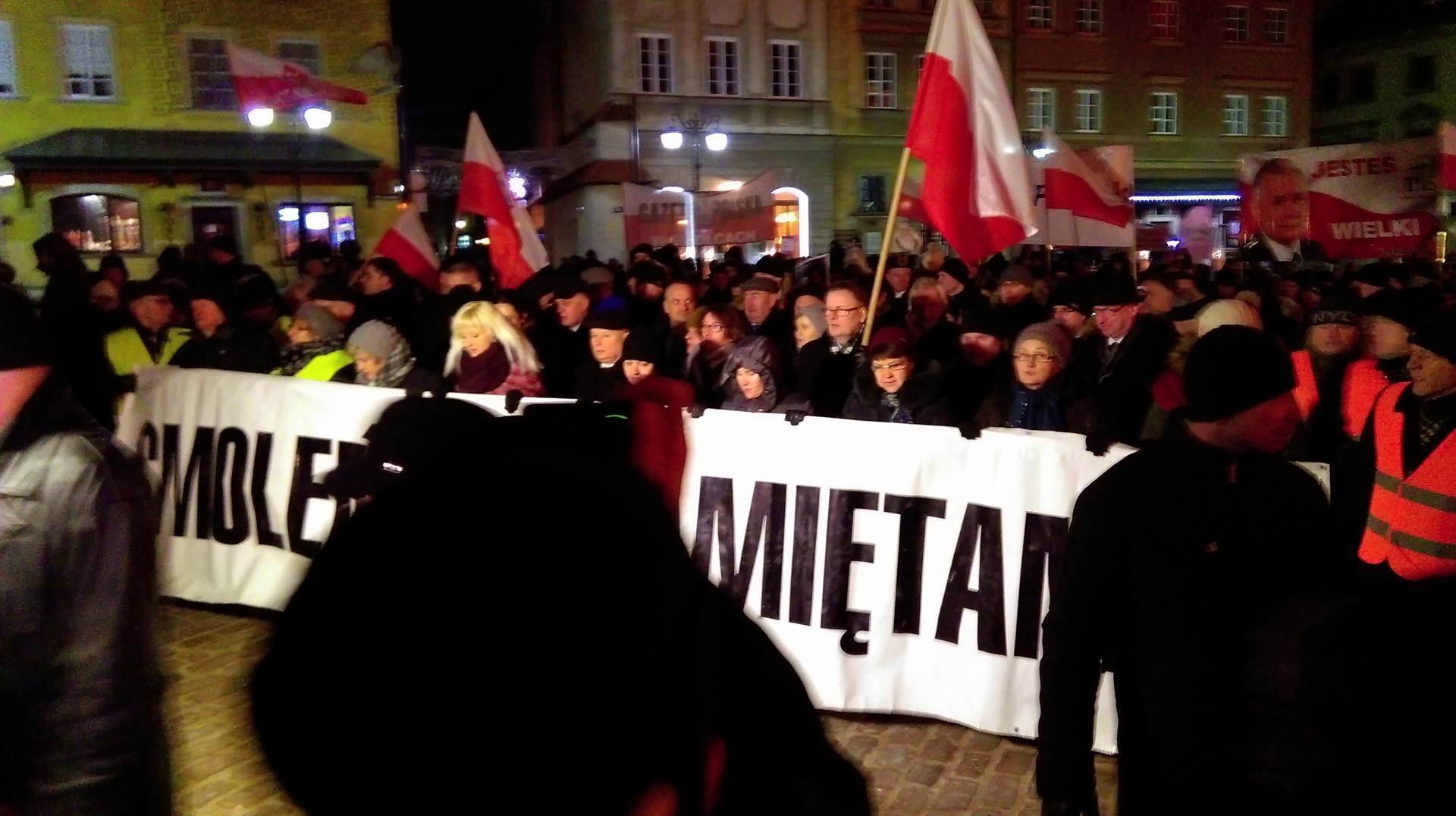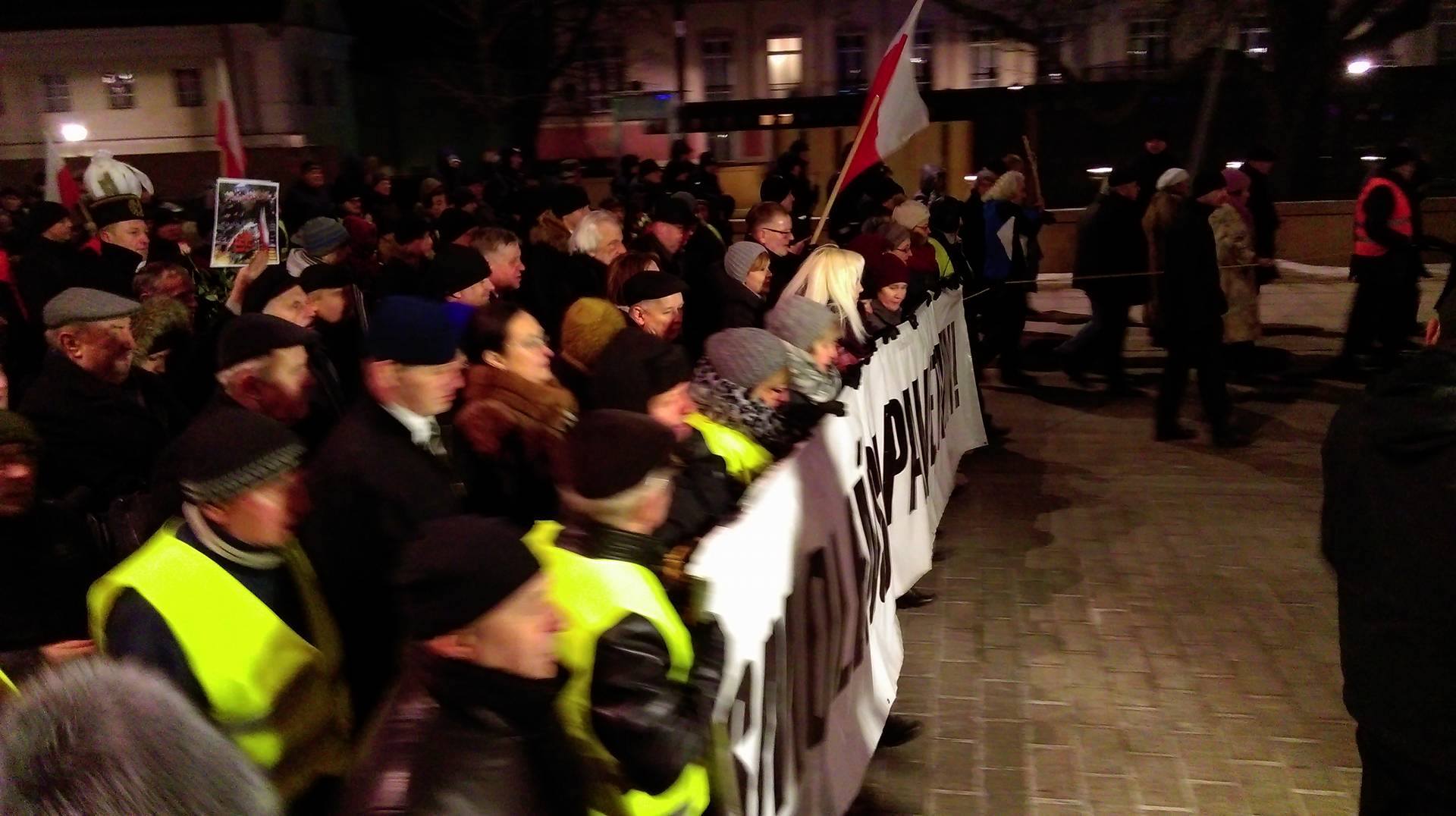 Z drugiej strony przeciwnicy partii odkrzykiwali „marionetka, marionetka”. Okrzyki wznosili jeszcze później, zagłuszając przemówienie Jarosława Kaczyńskiego. Ten stwierdził, że to osoby, które boją się prawdy, która zostanie niedługo ujawniona.