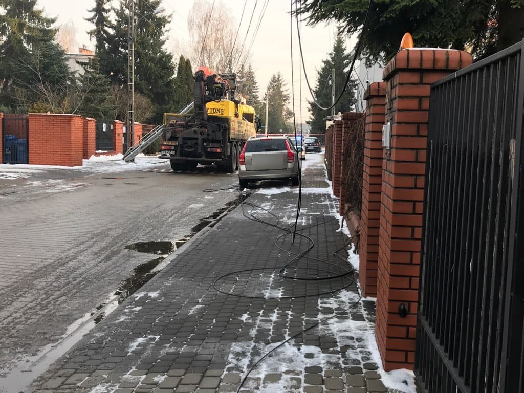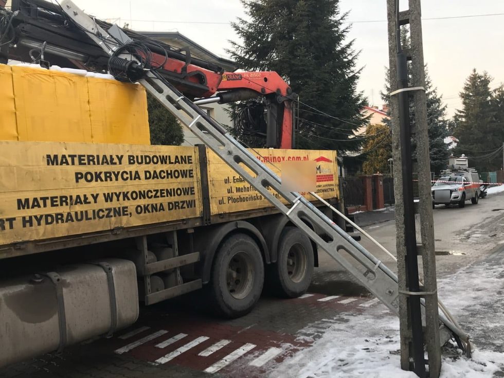 Z ostatniej chwili! Ciężarówka zerwała kable i uderzyła w słup. Ulica zamknięta